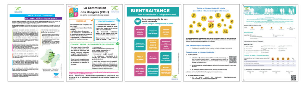 Ces documents d’accueil pour informer et accompagner les usagers, patients et familles, dans le cadre de leur prise en charge dans nos Centres Médico-Psychologiques (CMP) sont remis en version papier par le secrétariat de l’unité de prise en charge :