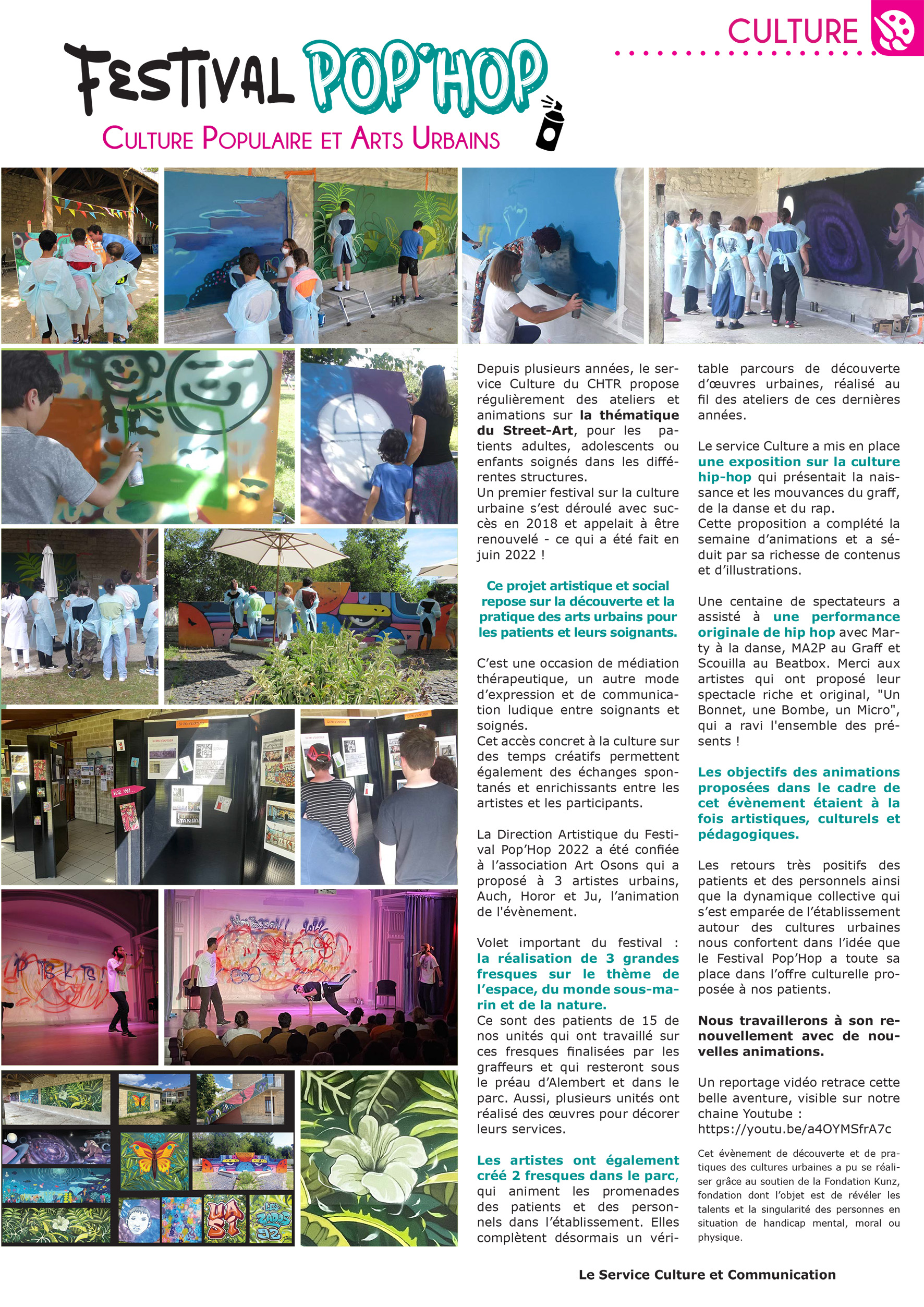 carnaval, fête de la musique, kermesse, planétarium, ferme pédagogique, venue de clowns, séances de yoga, festival de Street Art…